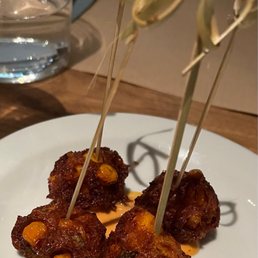 I had a good overall experience at Nougatine. I would have normally rated this overall as 4 stars but I am adding one star back for the service. The service was really top notch and we found them to be extremely kind. It was one of those NYC days where something was up and we kept getting redirected all over the city by traffic cops and we were late for our reservation. We called them and informed them and they were very kind about it. It took us an extra 15 mins after I was dropped off for my husband to get to the parking garage 3 blocks away. They never rushed us. I am very grateful for their service. It was my husband's birthday and they ensured we had a good experience despite the traffic curveballs. In terms of the food, it started off very well. The bread they serve is warm and delicious. Crispy on the outside and fluffy on the inside. The amuse bouche is very flavorful. It is a croquette served with truffle sauce. Perfect way to start the meal. For appetizers we got the kale salad and calamari. We really enjoyed both and can definitely recommend them. The main course is where things didn't go too well. I ordered the lobster burger. Maybe it was the wrong choice. It was a bit greasy and didn't deliver on the promise of the chili aioli. My husband got the Parmesan crusted chicken which he found to be a bit on the saltier side. Both were good, just not mind blowing. We were right back on track with the dessert. We got the butterscotch pudding. It was light and airy and not overly sweet. It is served with shortbread biscuits. We really enjoyed it. I got a little pot of chamomile tea with it. Whatever tea brand they are using is excellent. The ambiance was nice. It is far more casual than Jean Georges. It had a little bar area and small tables around. We were close to the windows so that was nice. I appreciate that they left a bottle of water on the table at all times.